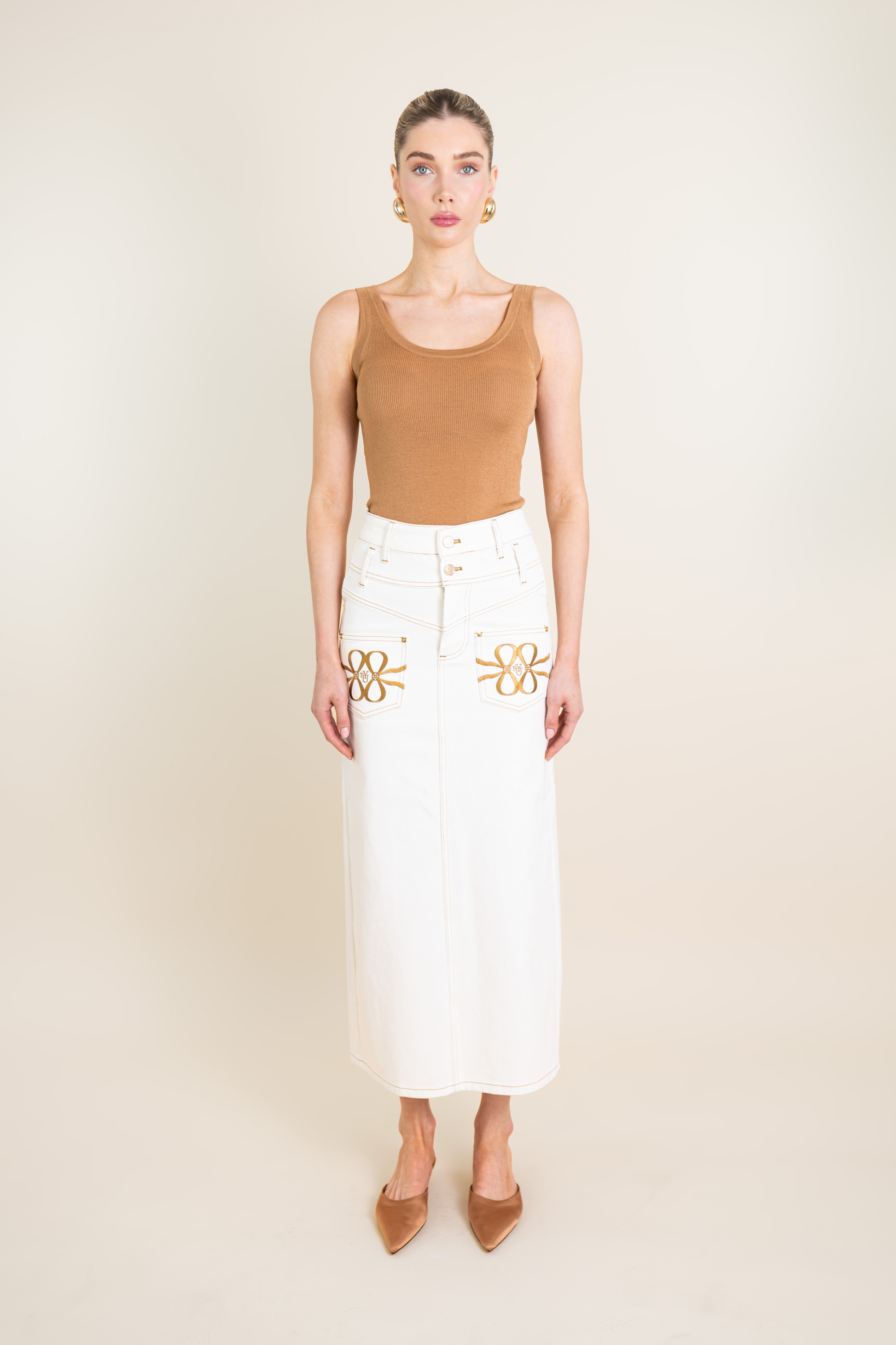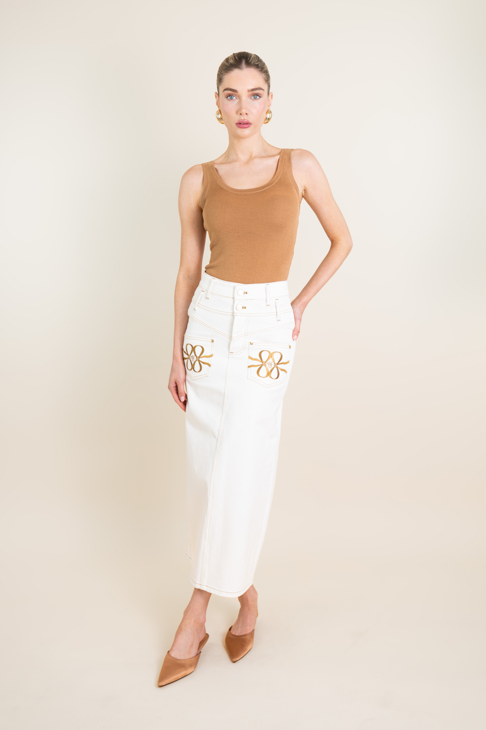 Superfine Merino Yarn Wool Knit Tank Top with rYU Lotus Metal.