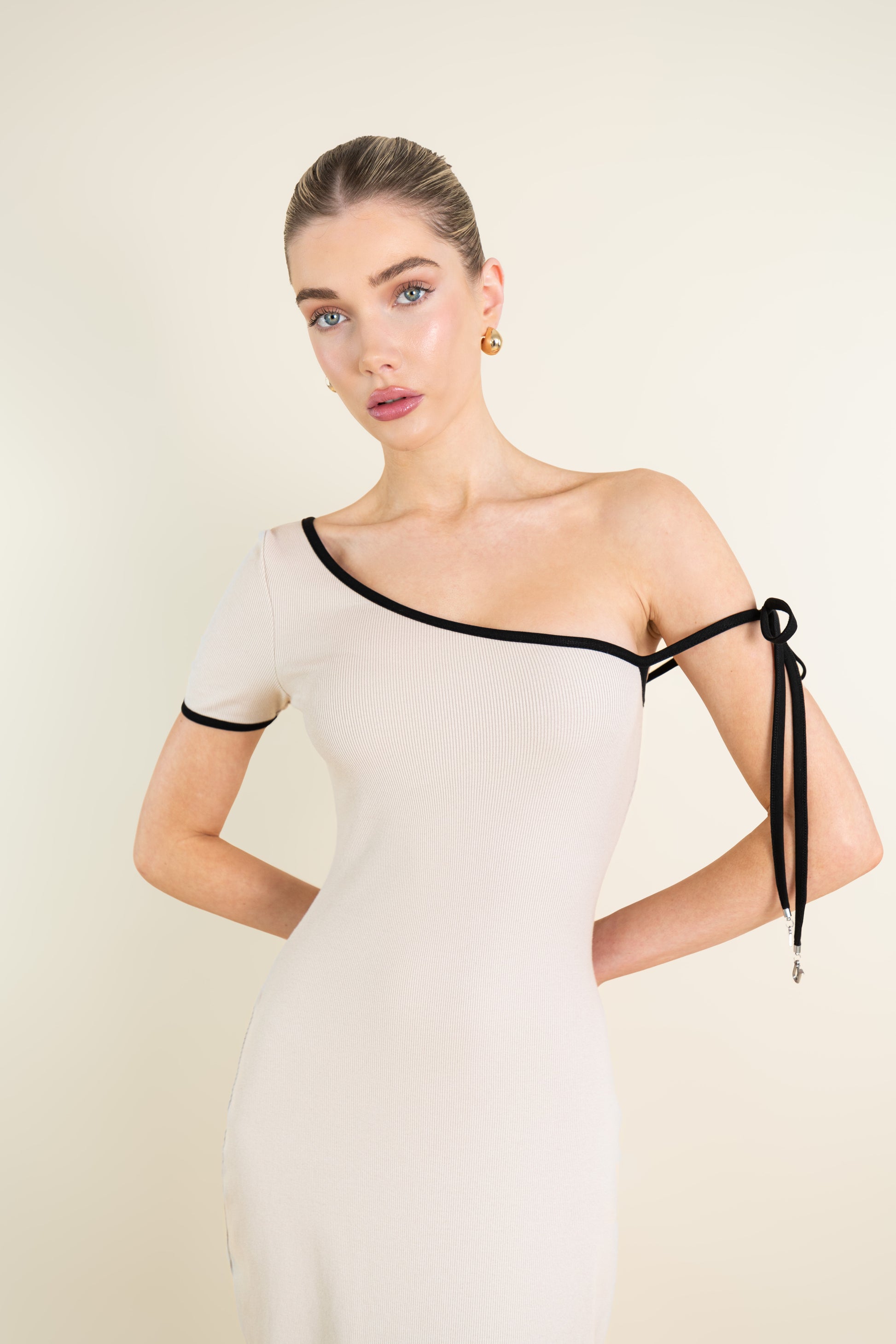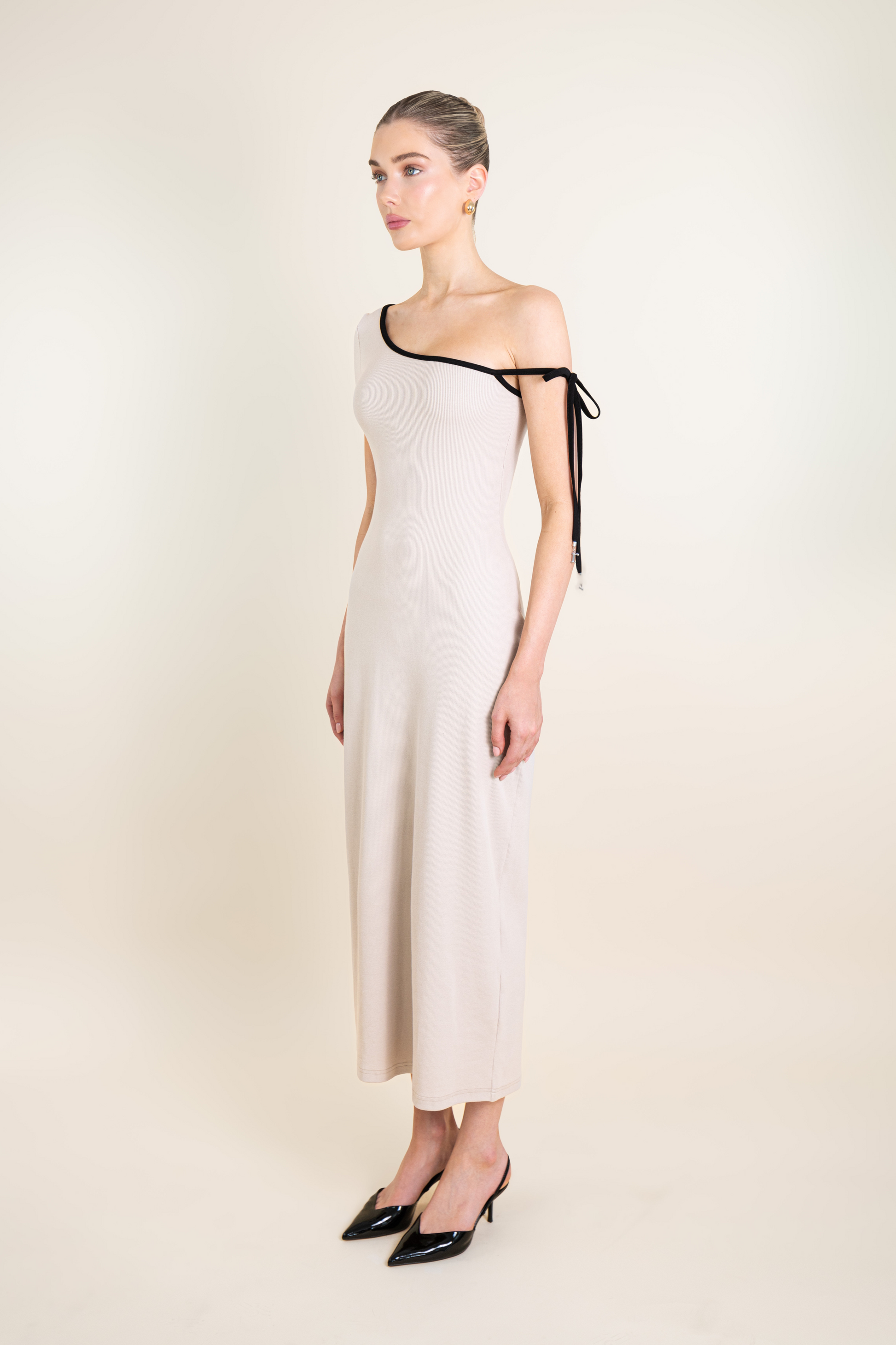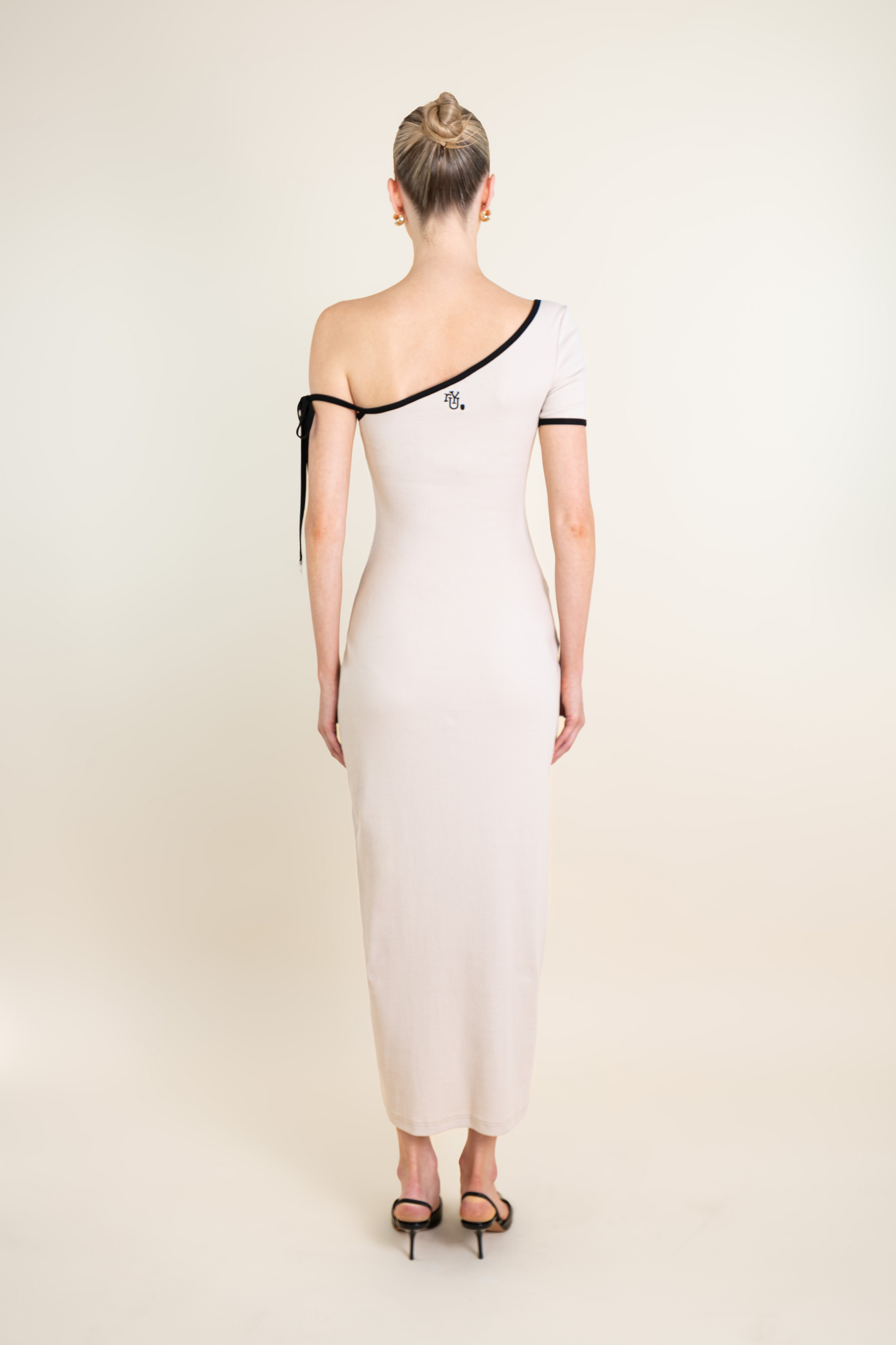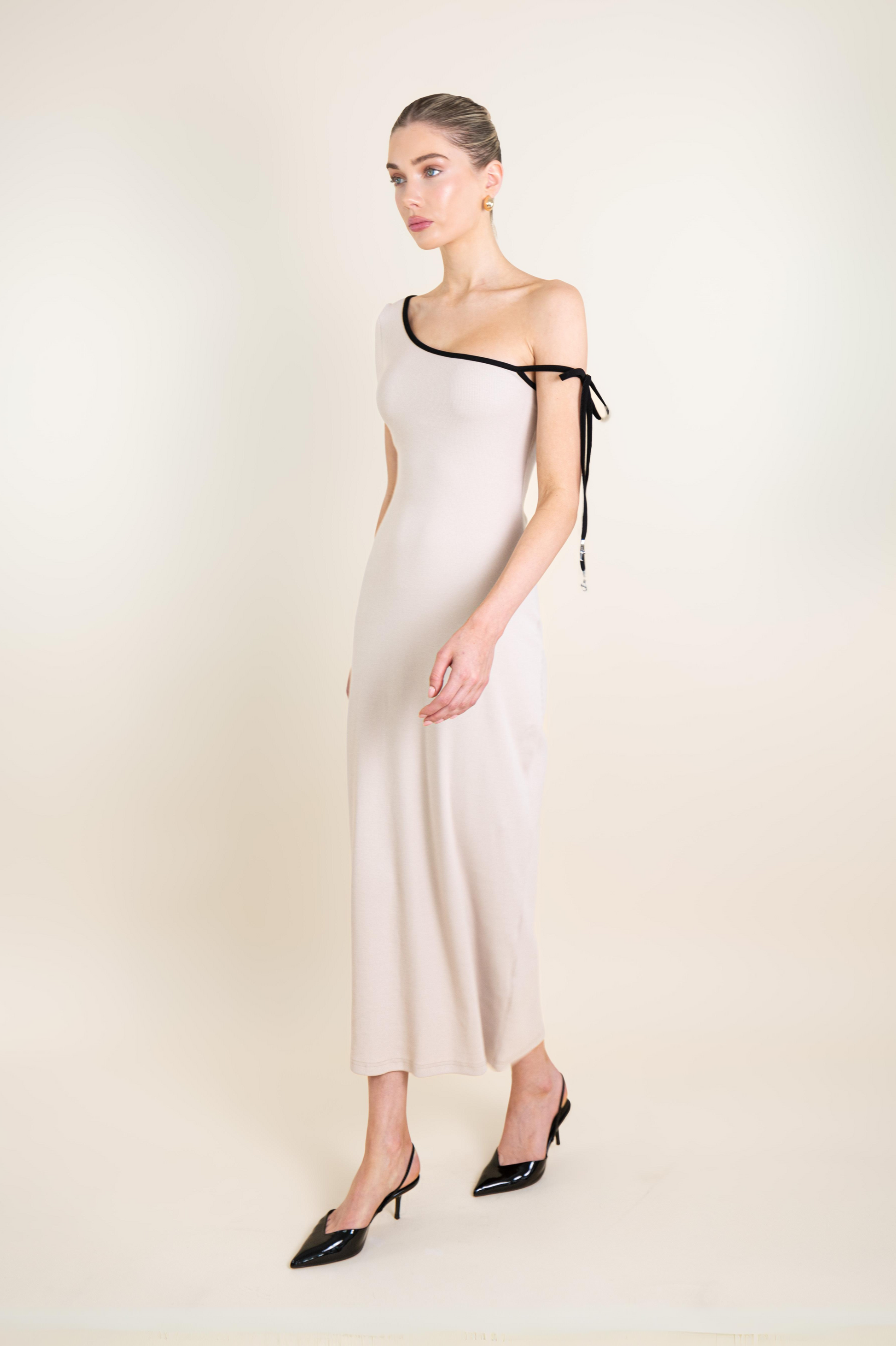 One Shoulder Ribbon Dress with rYU Letter Metals