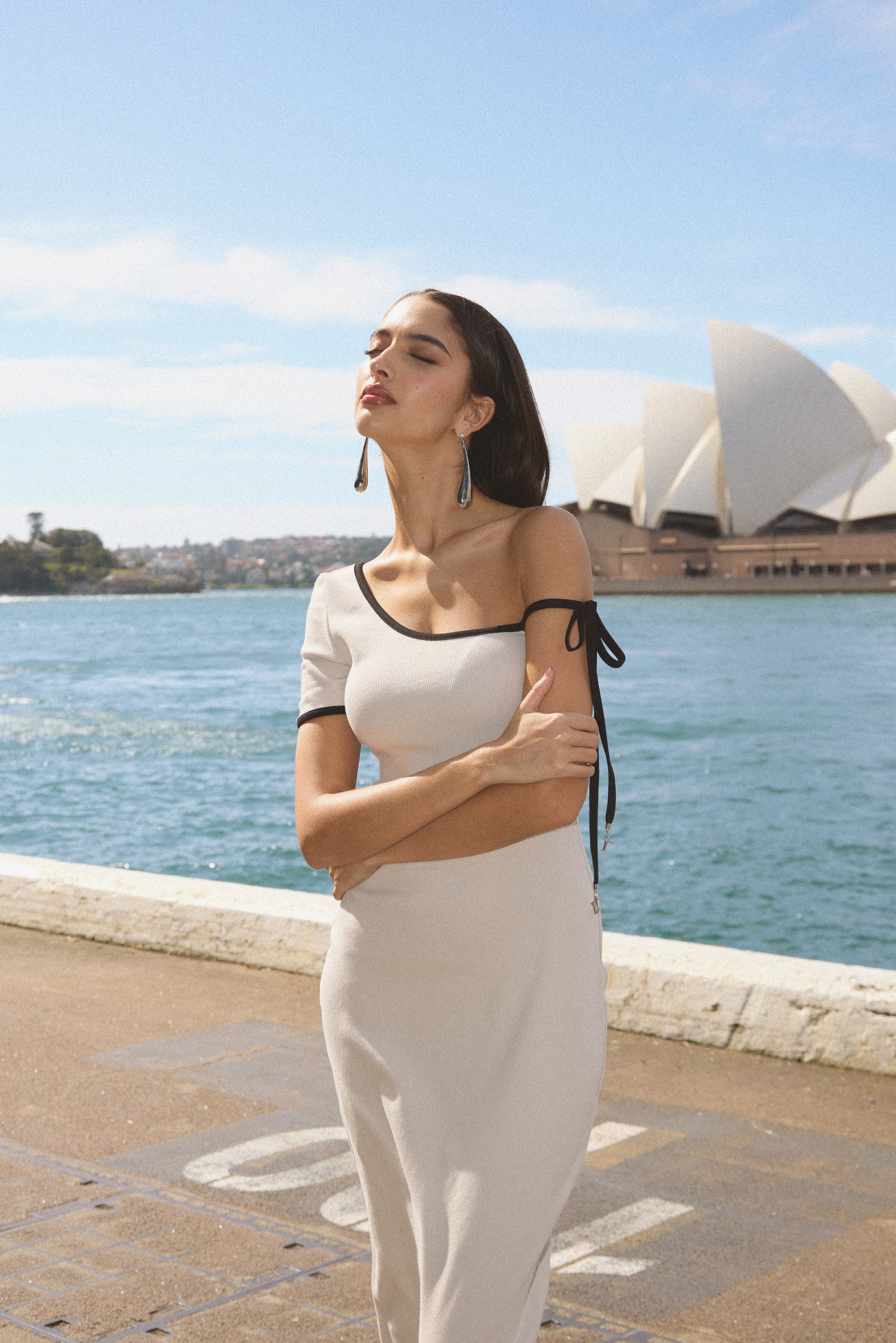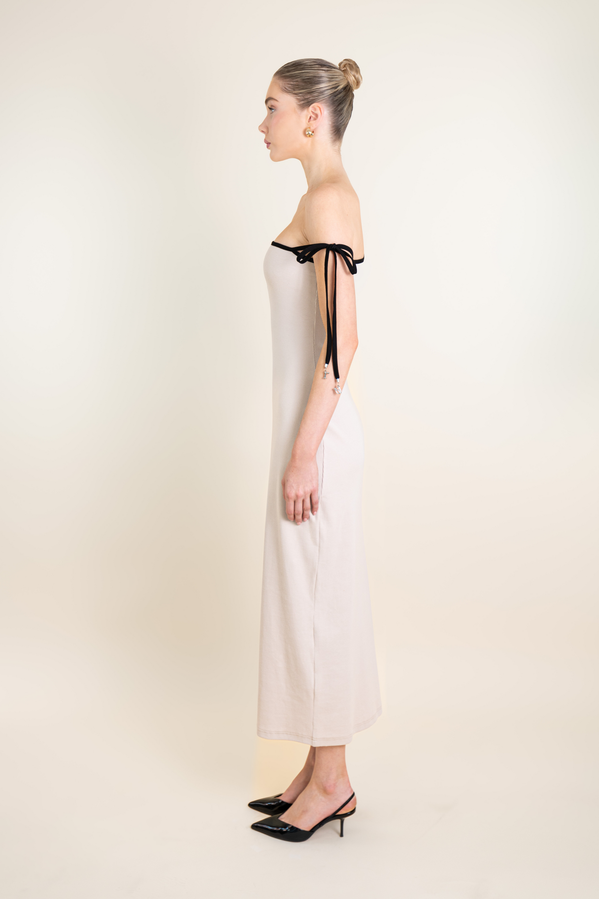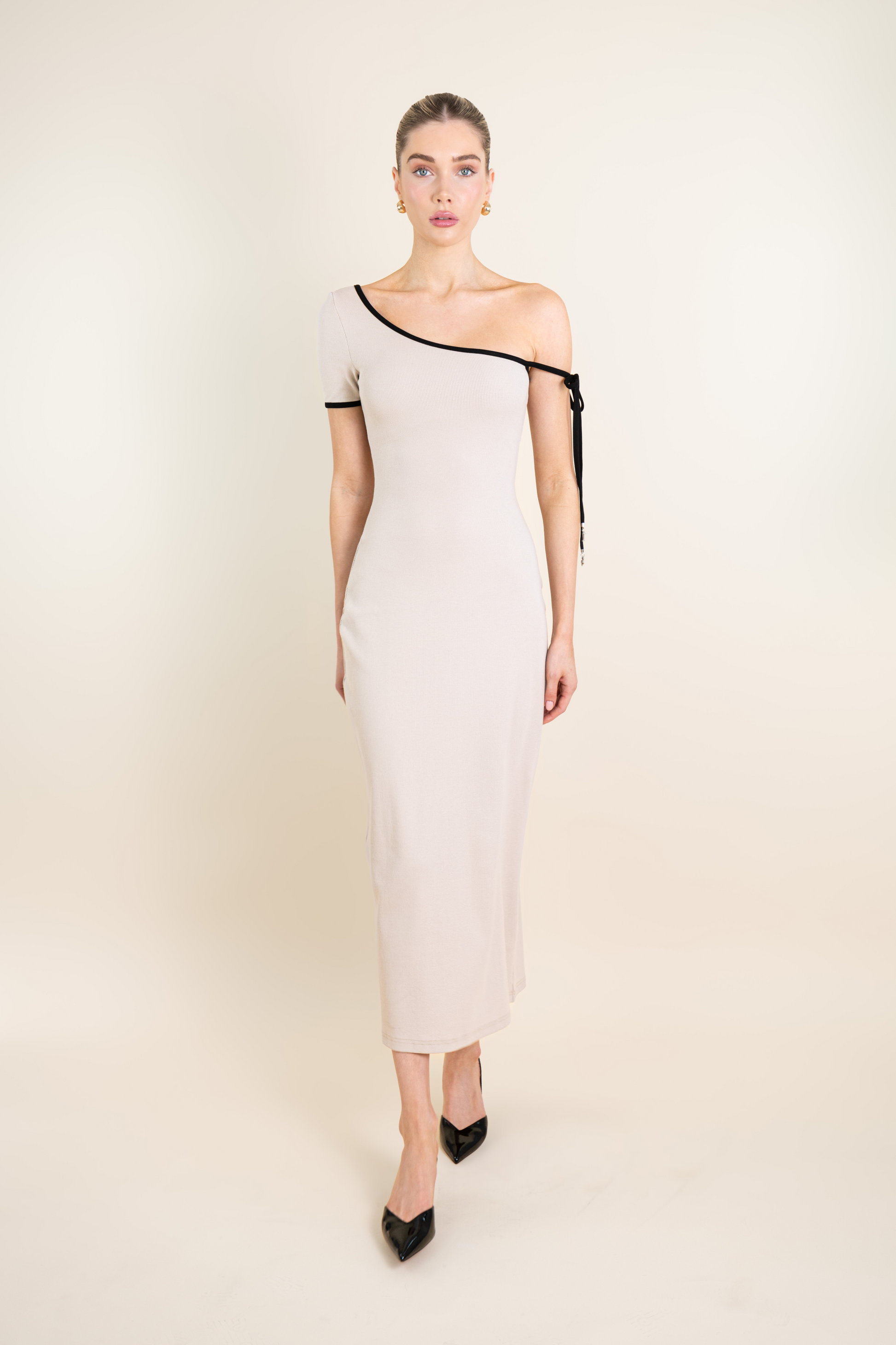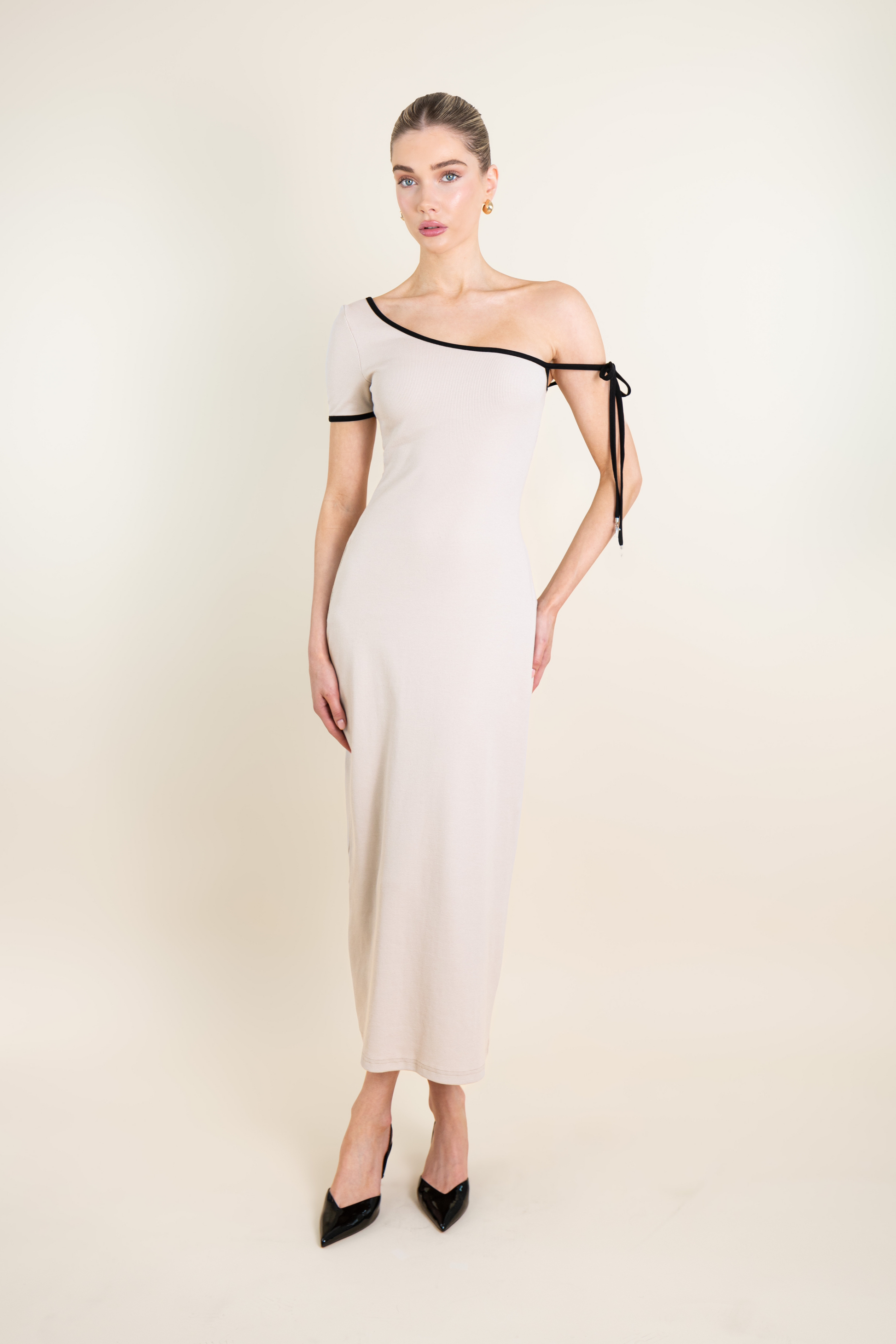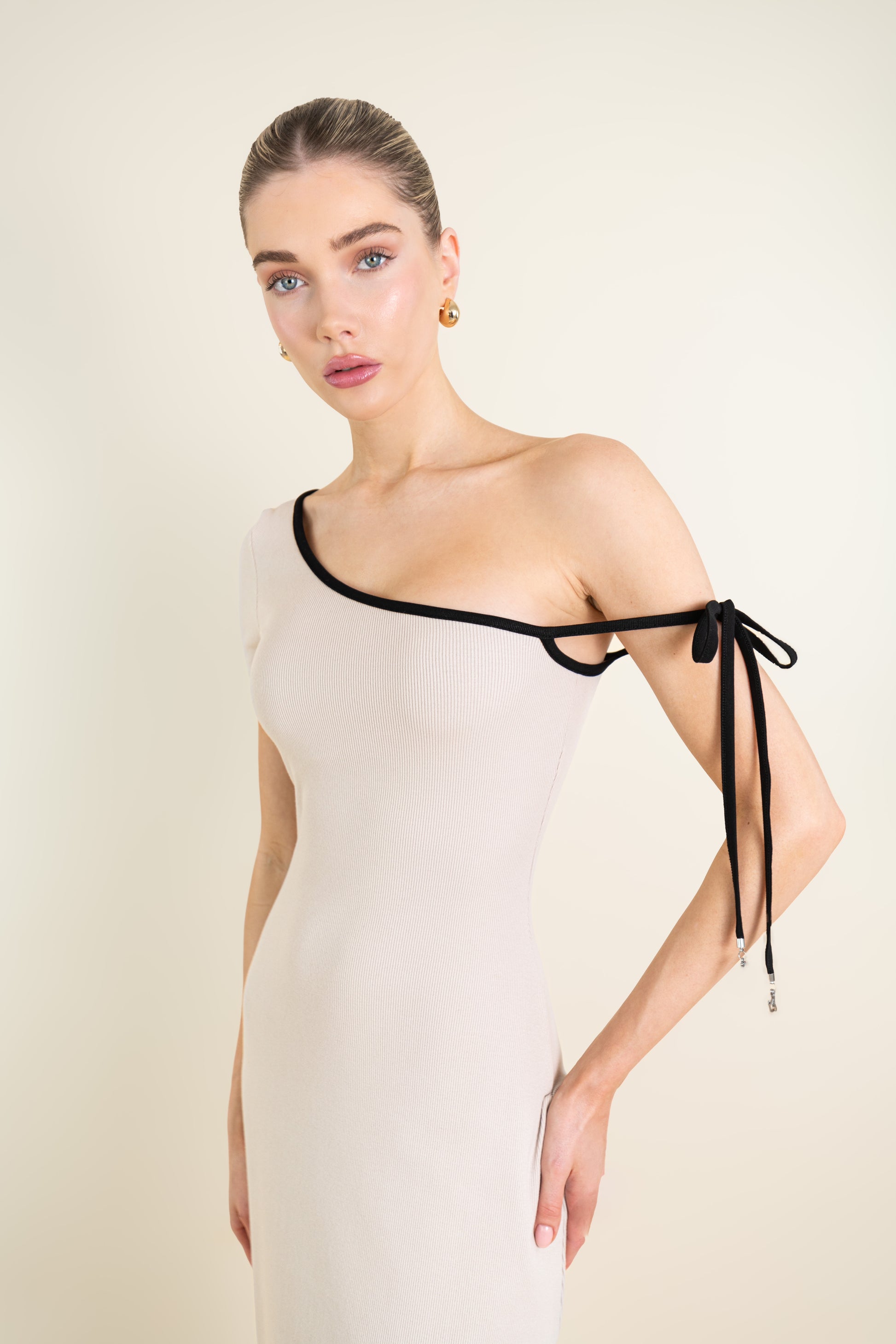 One Shoulder Ribbon Dress with rYU Letter Metals