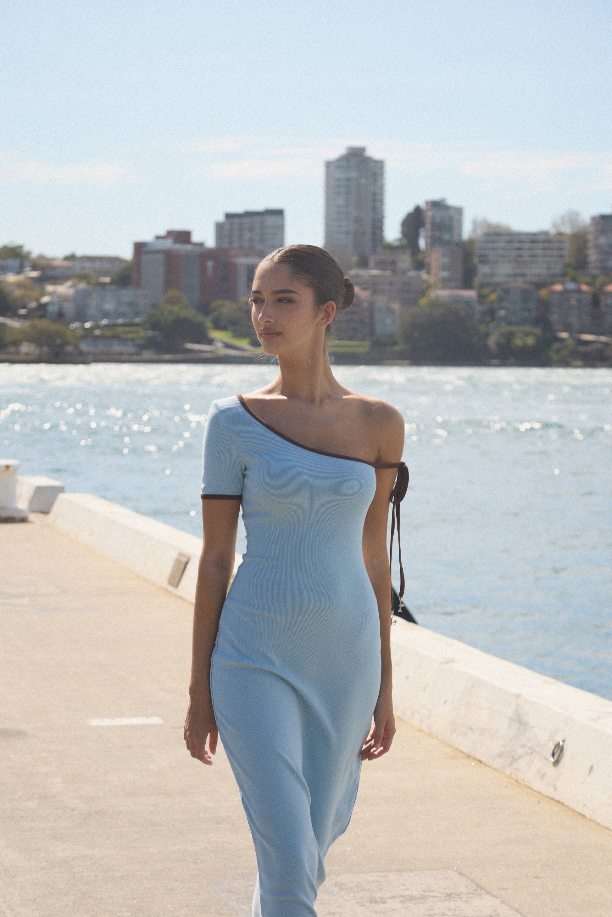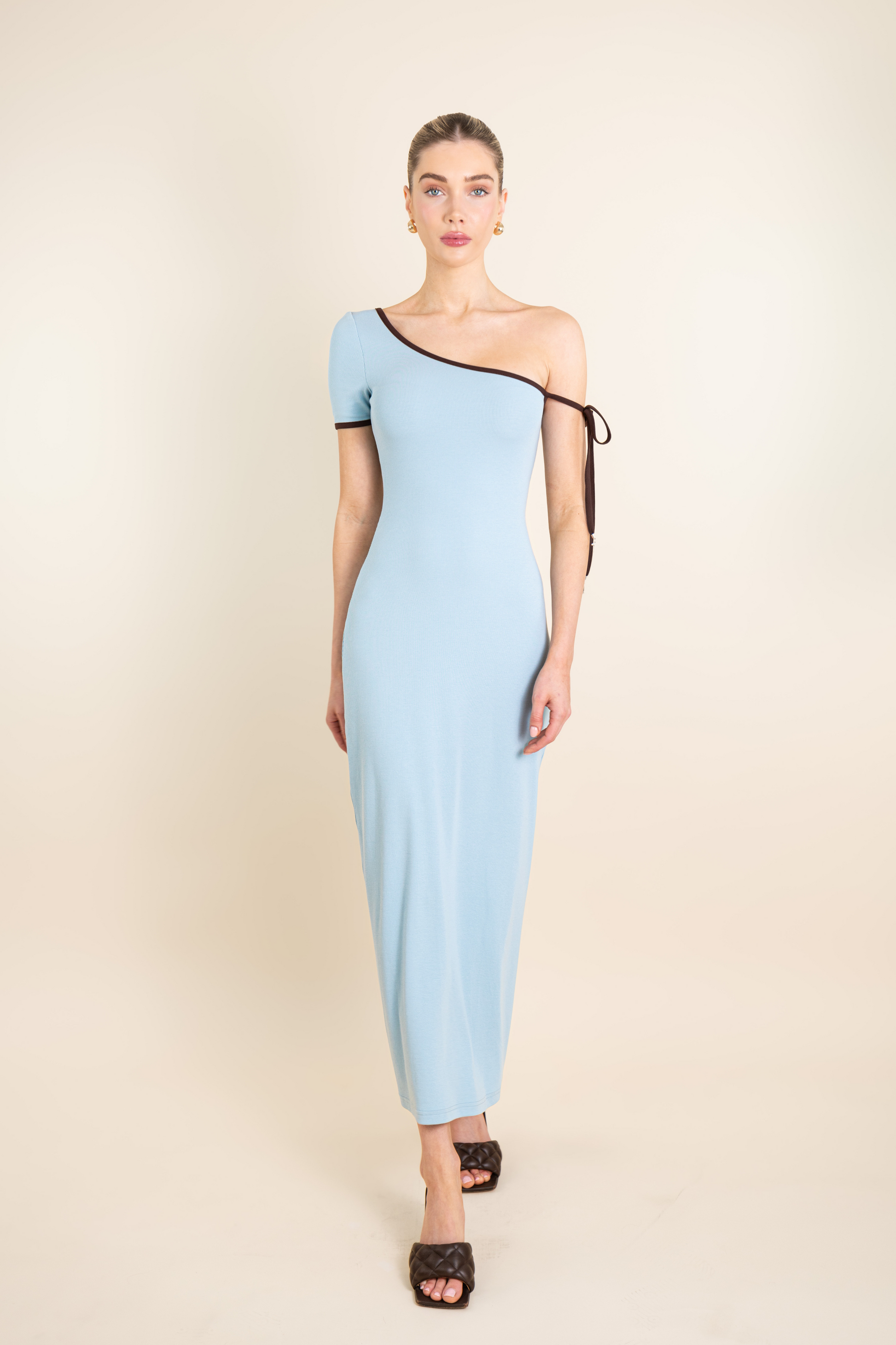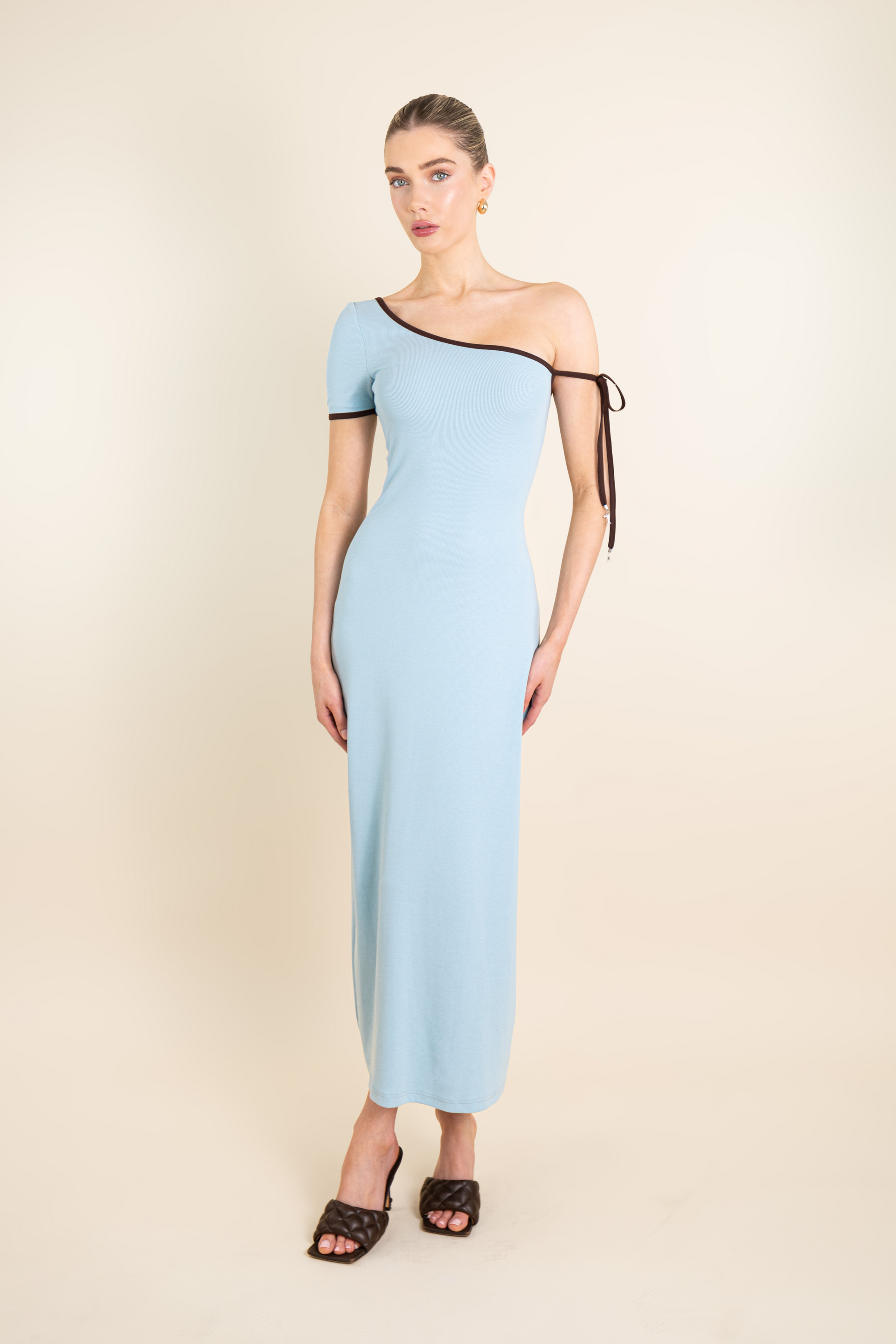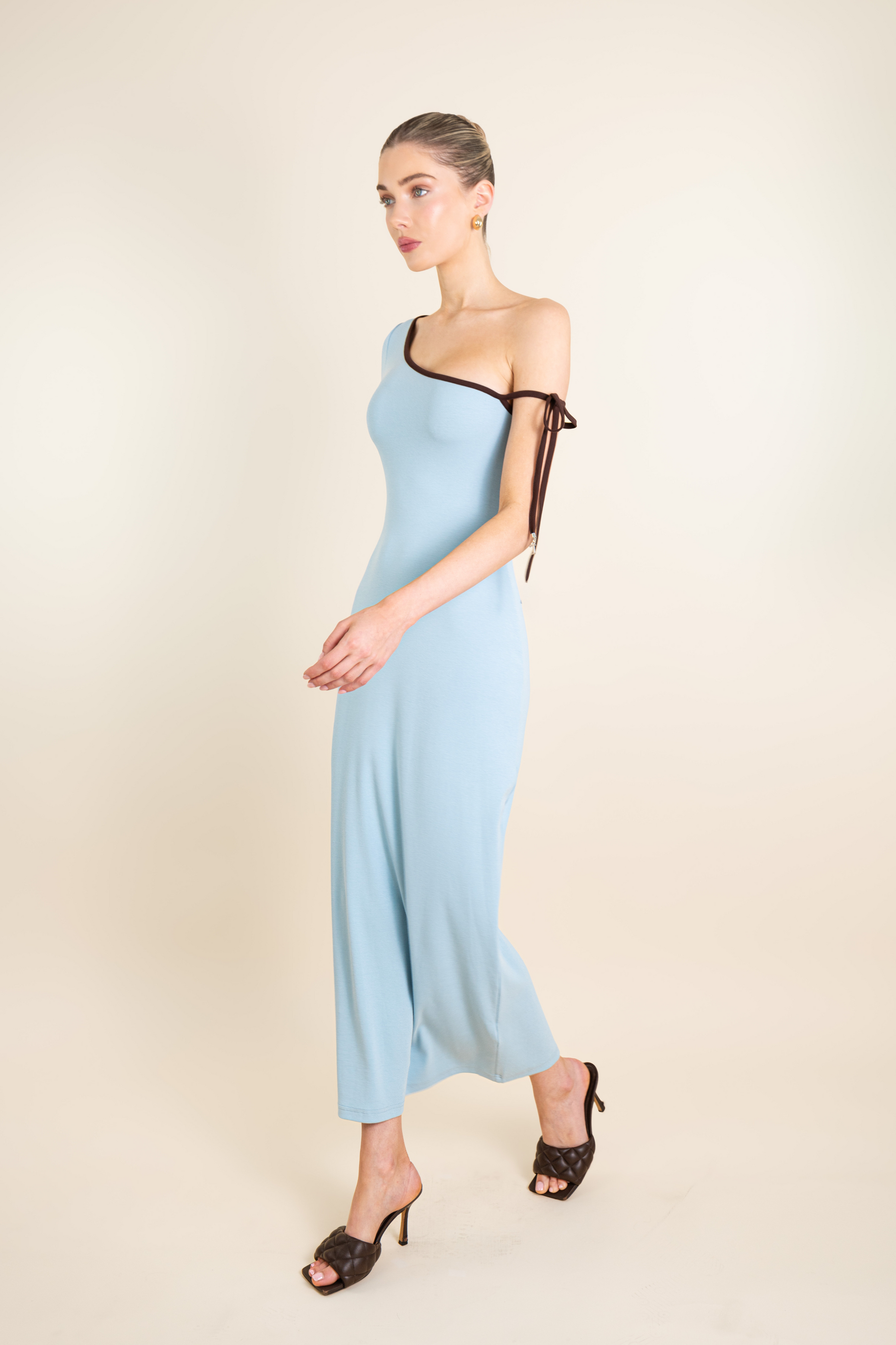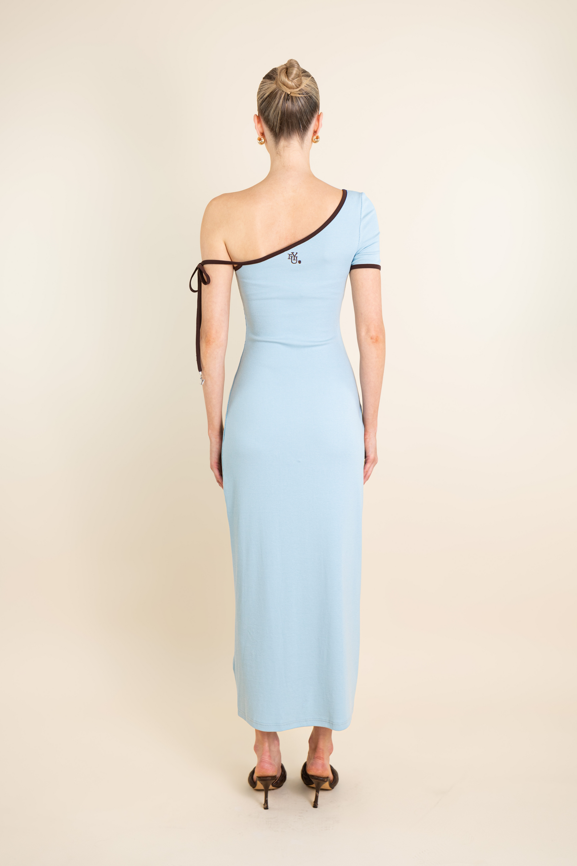 One Shoulder Ribbon Dress with rYU Letter Metals